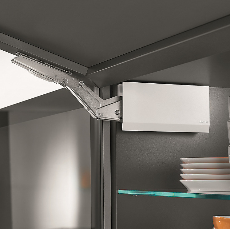 Het symmetrische beslagelement kan aan beide zijden gemonteerd worden, met speciale Blum systeemschroeven. Met de traploze openingshoekbegrenzer is eenvoudig te bepalen hoe ver het front geopend moet worden.
